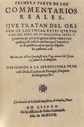 Fue en España donde el Inca Garcilaso escribió su famosa obra Comentarios Reales de los Incas, publicado en Lisboa en el año 1609, el cual se basaba en historias contadas por sus parientes vinculados a la nobleza inca cuando era un niño en el Cusco. Los Comentarios Reales de los Incas contenían dos partes: la primera sobre la vida del Inca, y la segunda acerca de la conquista española del Perú, publicado en 1617.
